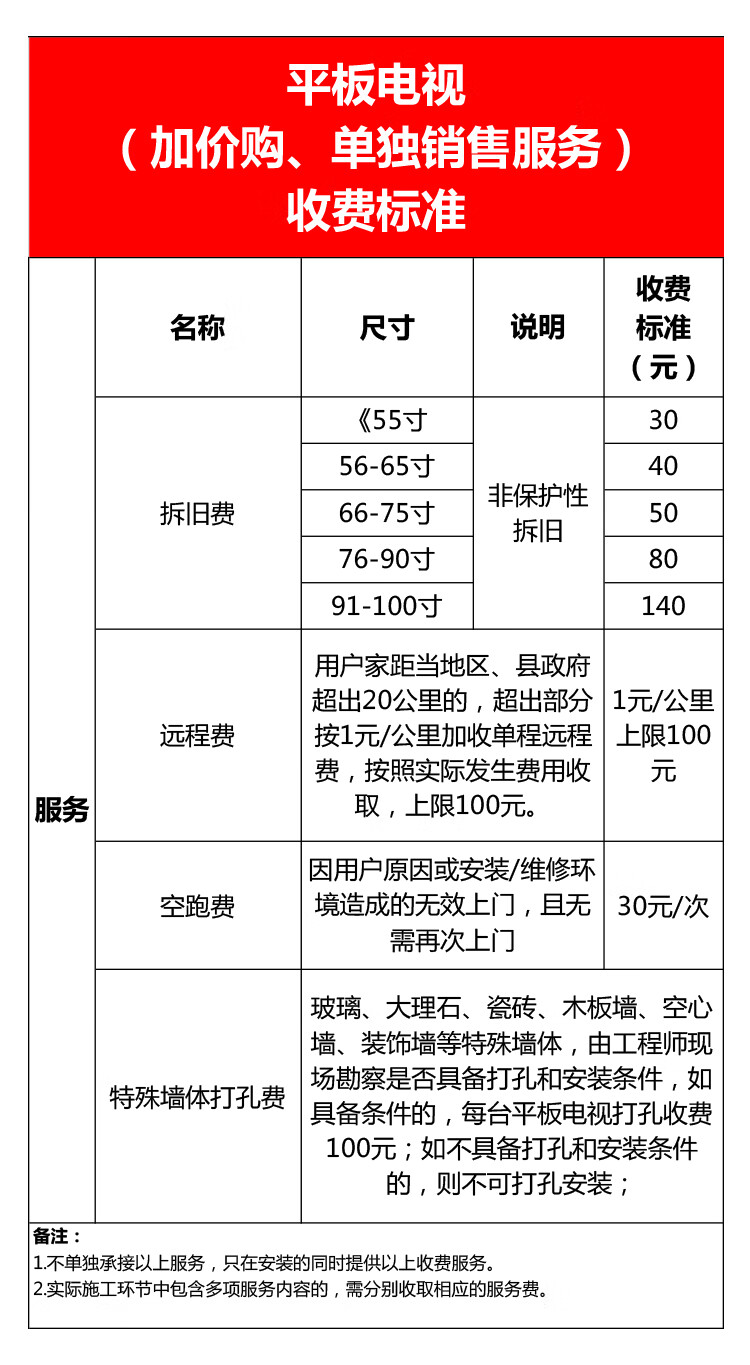 京东平板电视收费标准