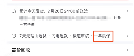 您选购有“一年质保”标识的第三方卖家商品,自订单确认收货次日零时起(安装类商品自商品安装完成之日起计算),如商品在1年内出现质量问题或性能故障,当您申请售后维修时,卖家将根据商品出现的具体问题,为您提供免费维修、退货退款、换货、免费补寄零配件、维修费用补偿等形式的售后保障服务,具体以售后审核结果为准。